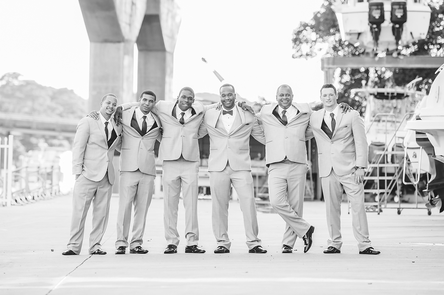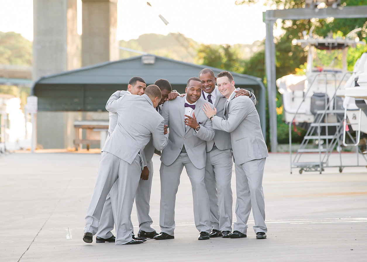 It was a gorgeous Friday afternoon at the Marina Shores Yacht Club. We arrived at the venue and everything looked perfect in its place! The sun was shining and the temperatures were more bearable than recent weddings we’ve photographed. It has been such a hot summer! Jake got started with the guys and I started on details shots while waiting for the bride and her girls to arrive.