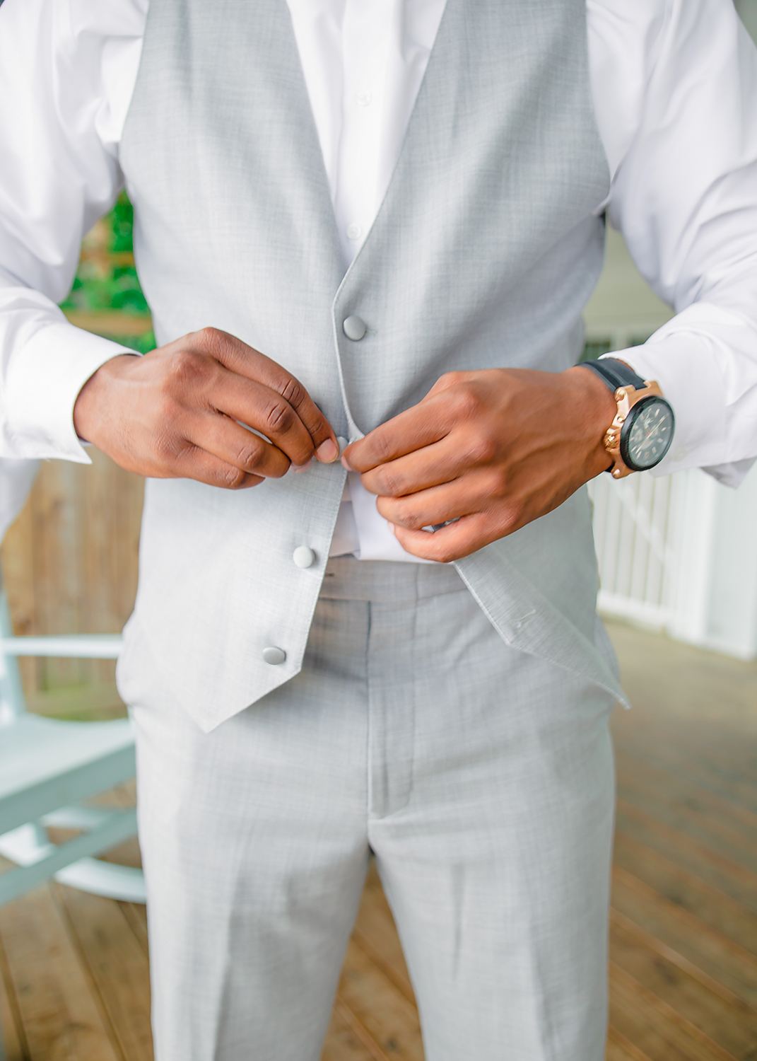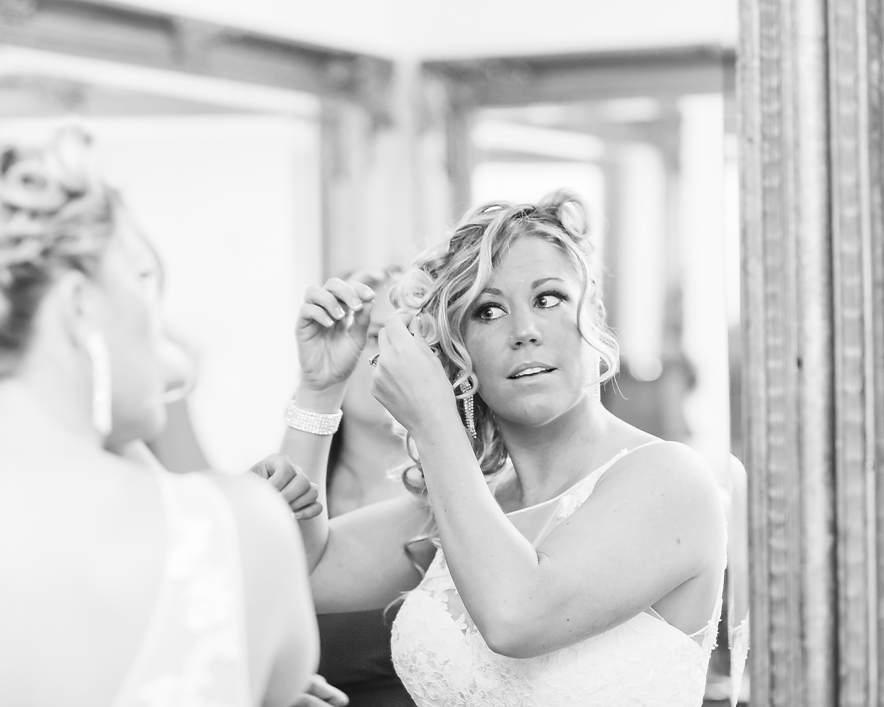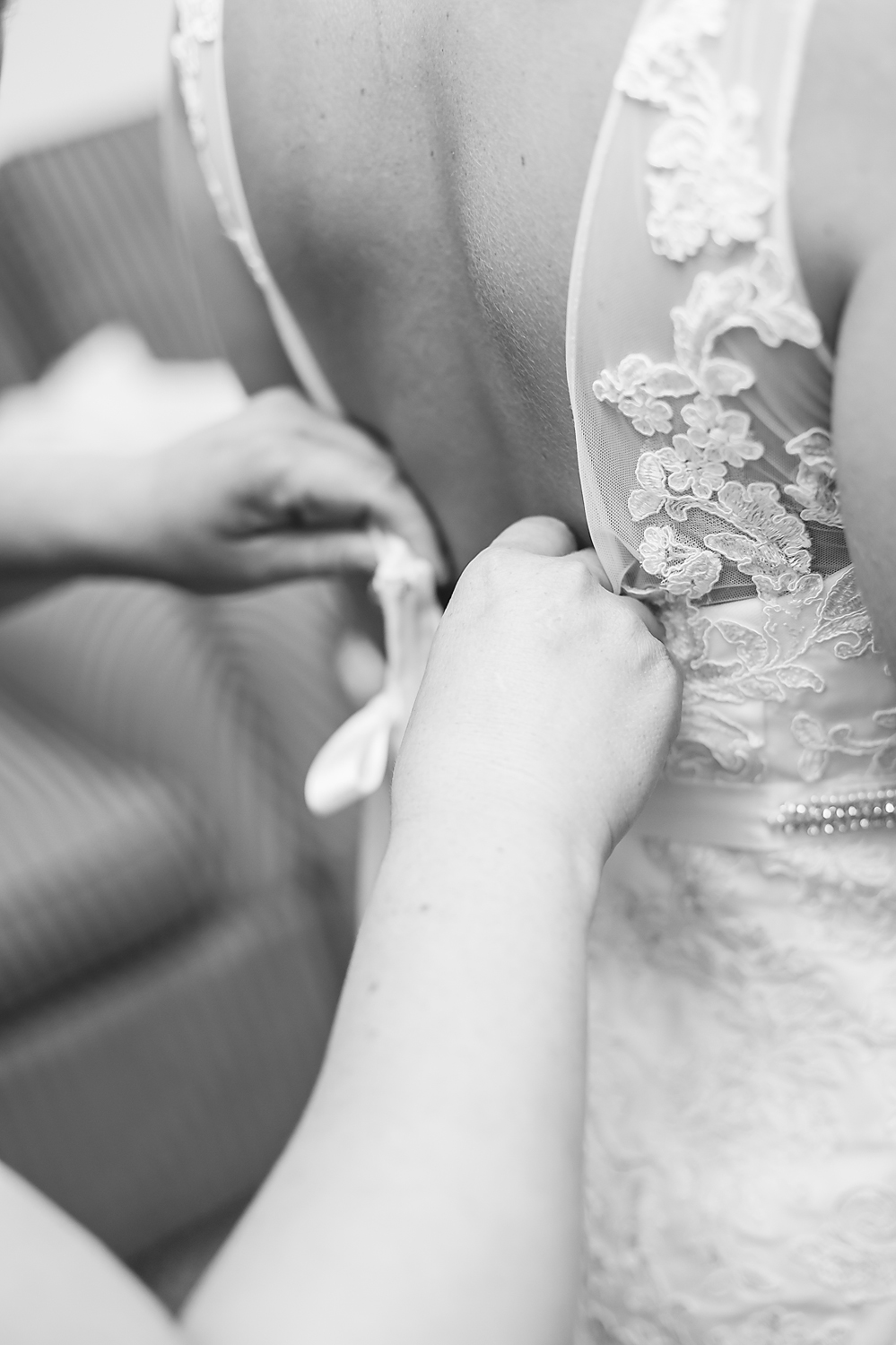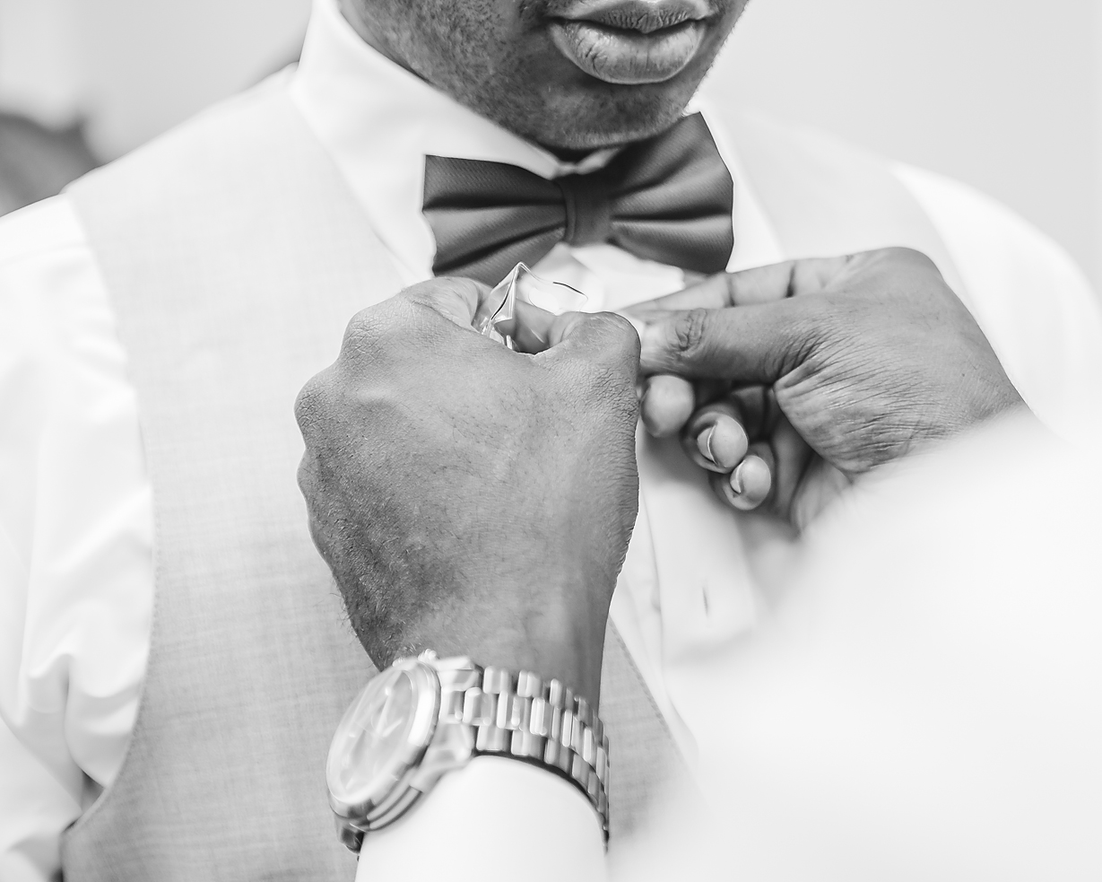 Once Karissa arrived, she got dressed in her gorgeous gown from David’s Bridal and she looked stunning. Her cousin helped with her hair, which I thought was so perfect.
