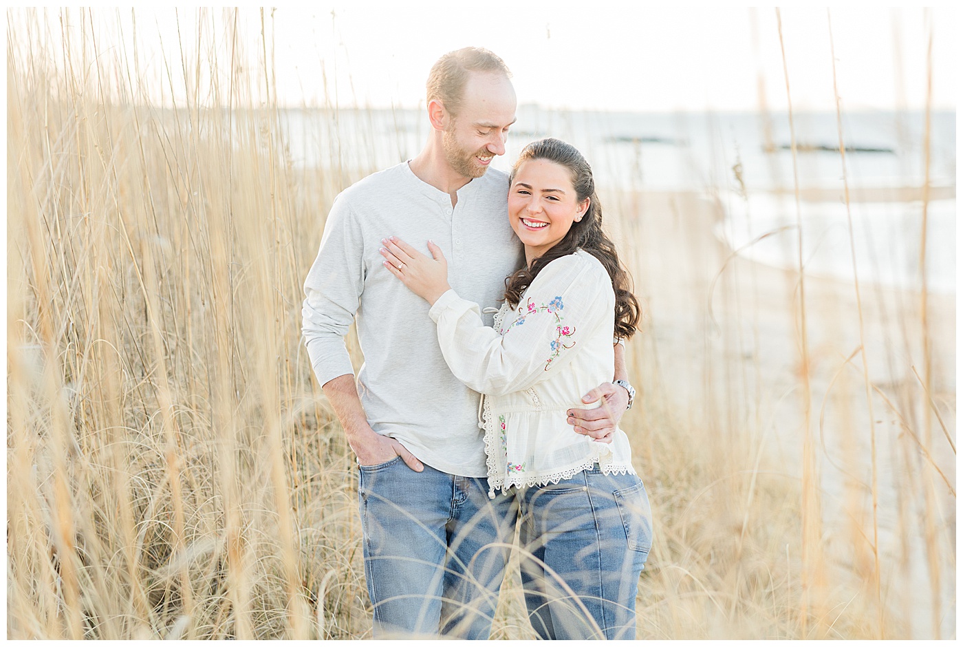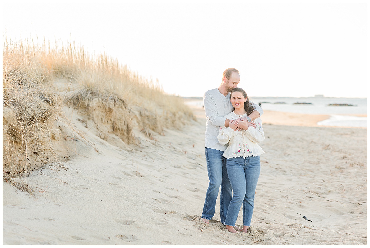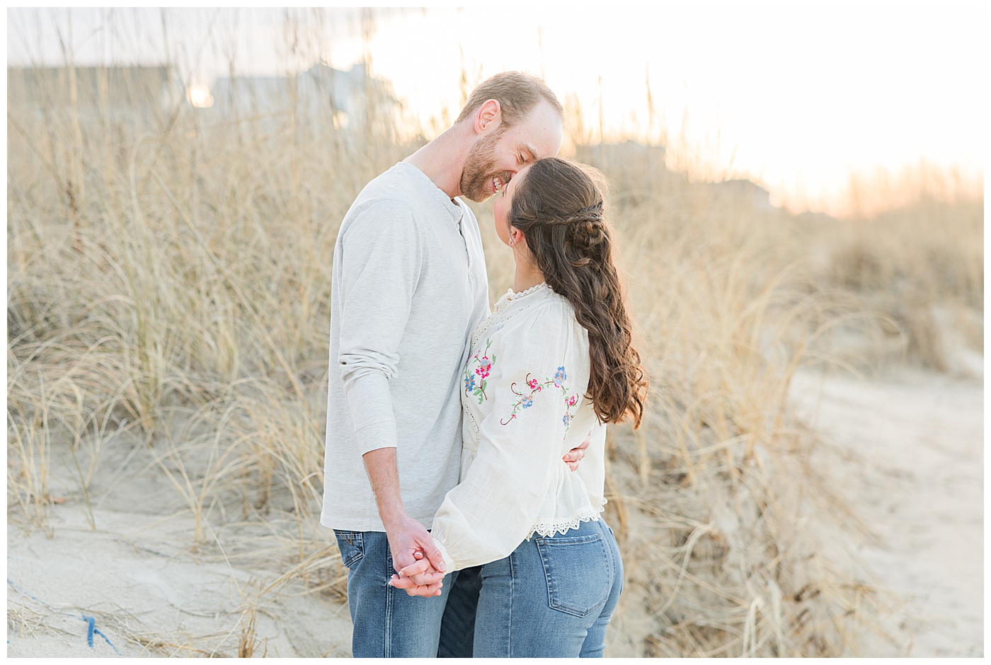 East Beach in Norfolk, Virginia is such a gem for engagement photos — coastal dunes, soft light, charming boardwalks, and a peaceful shoreline that feels like a quiet escape from the busyness of the city.