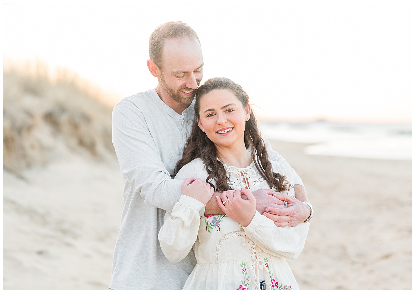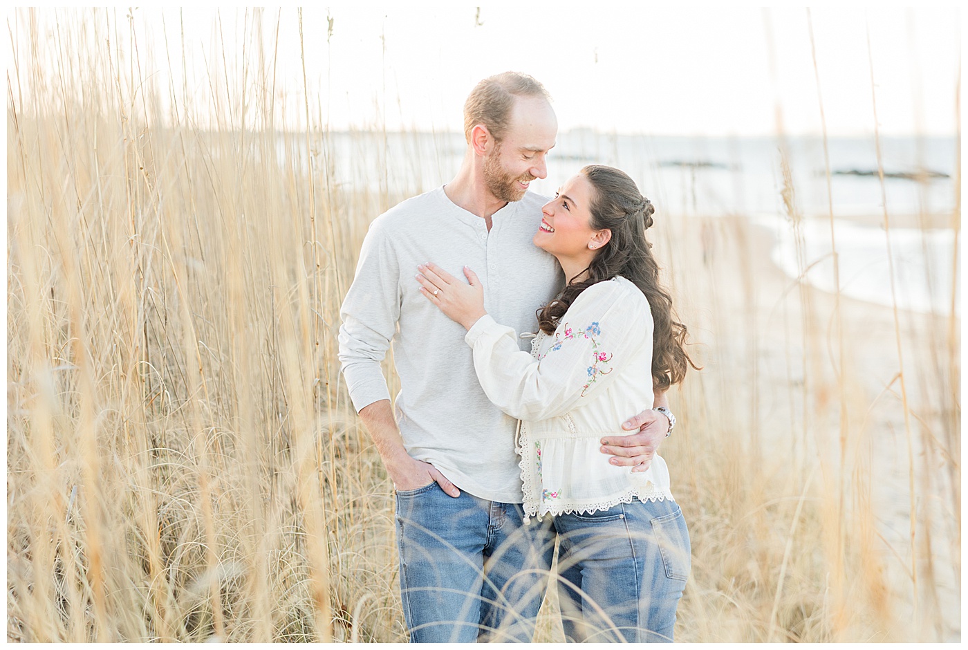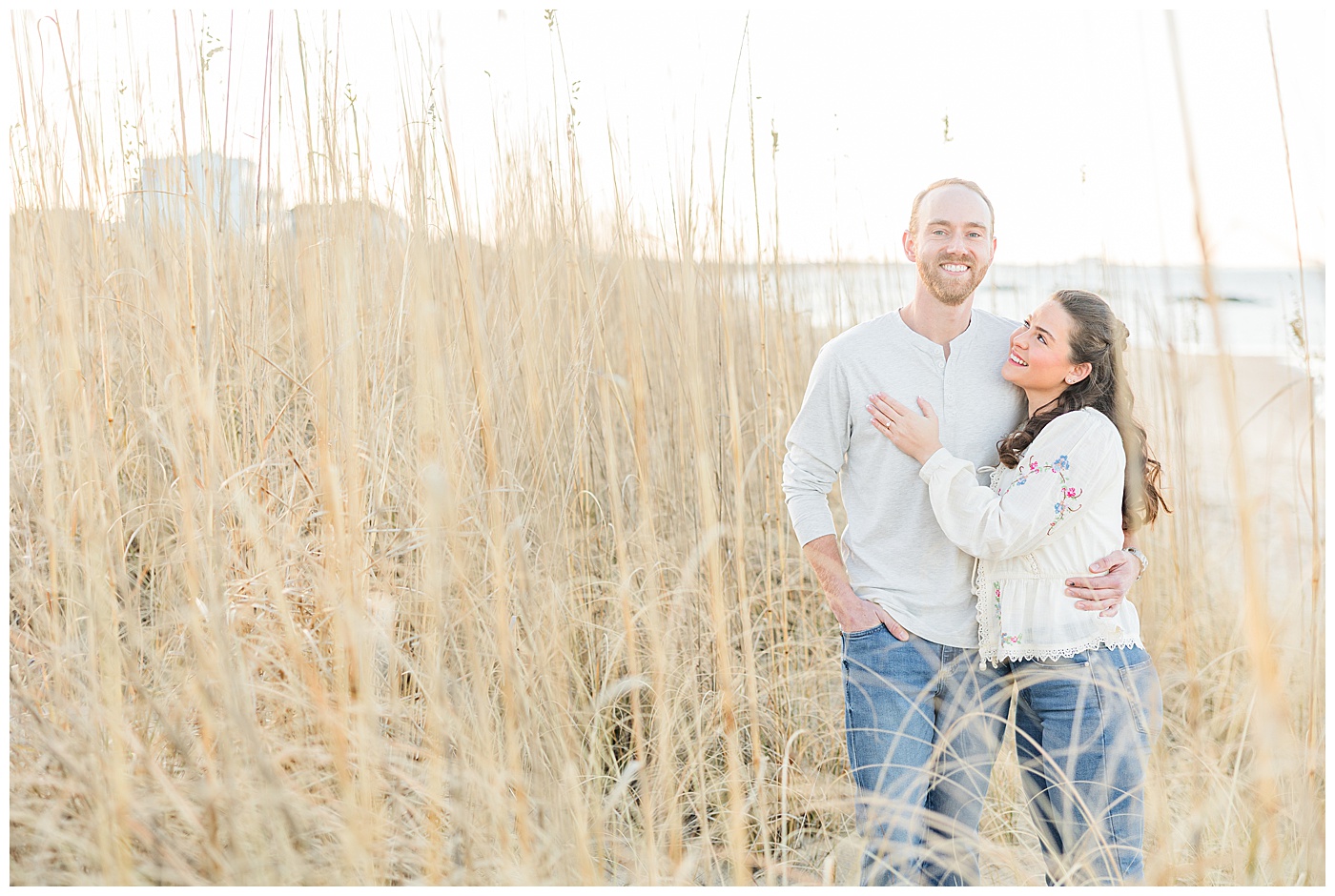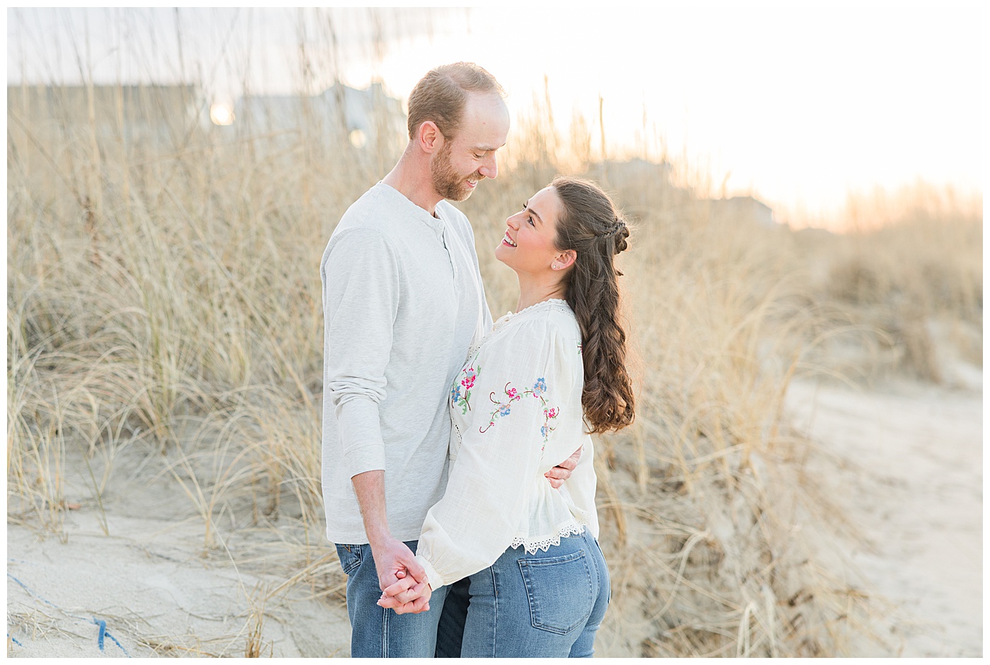 East Beach in Norfolk, Virginia is such a gem for engagement photos — coastal dunes, soft light, charming boardwalks, and a peaceful shoreline that feels like a quiet escape from the busyness of the city.