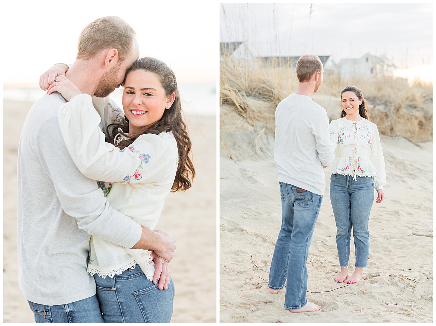 Martin proposed on the beaches of the Outer Banks over New Year’s Eve while the two were staying at Margaret’s grandmother’s beach house — surrounded by family, ocean air, and the perfect mix of simplicity and meaning. It couldn’t have been more fitting.
