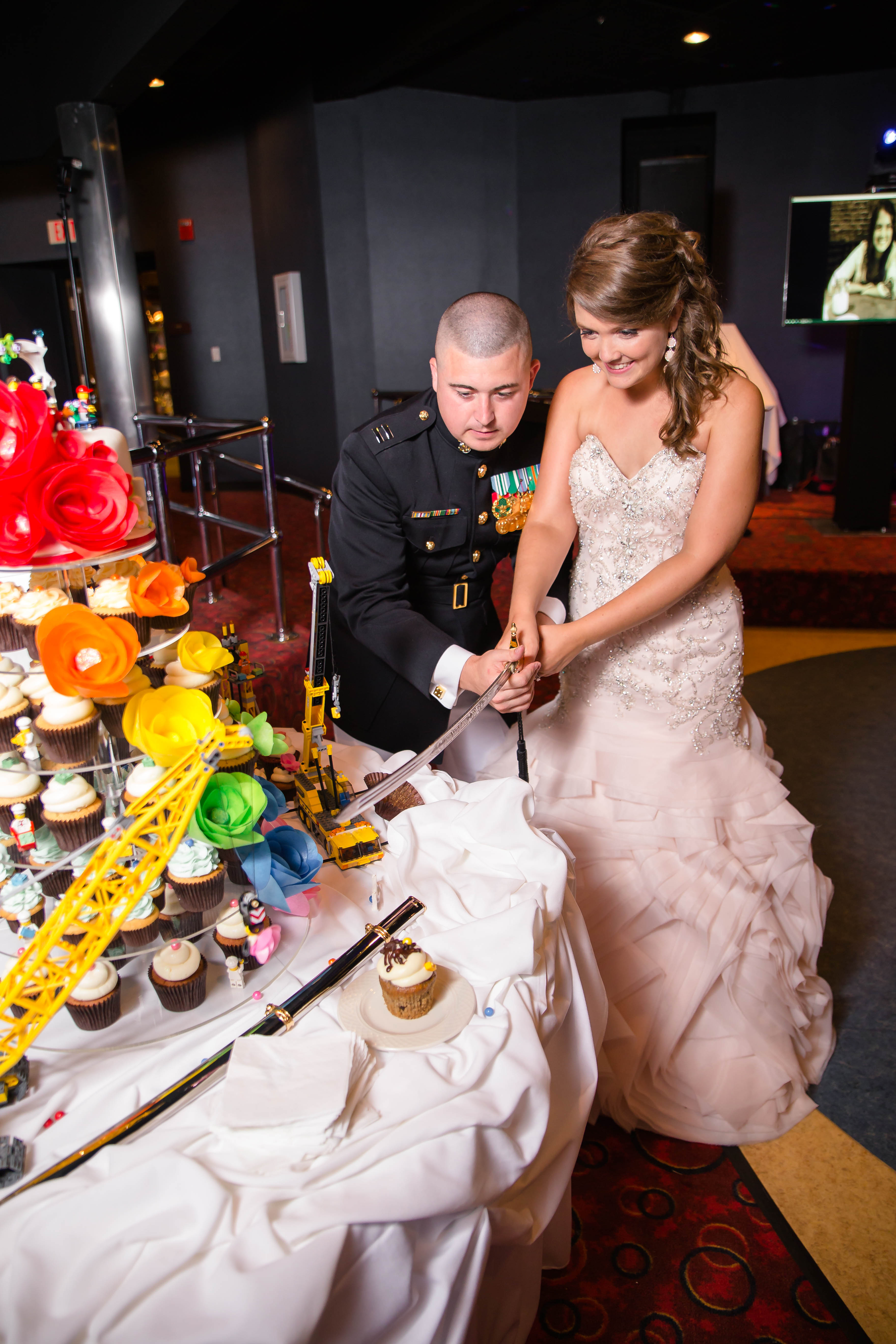 This lego themed wedding on the Langley Airforce base was to die for! Tom & Caroline used their love for legos throughout this wedding in little hidden places from the lego boutonnieres to their lego cake, it was really amazing. Actually, during their engagement session in the Spring they brought hugo legos and used it to write their date on.