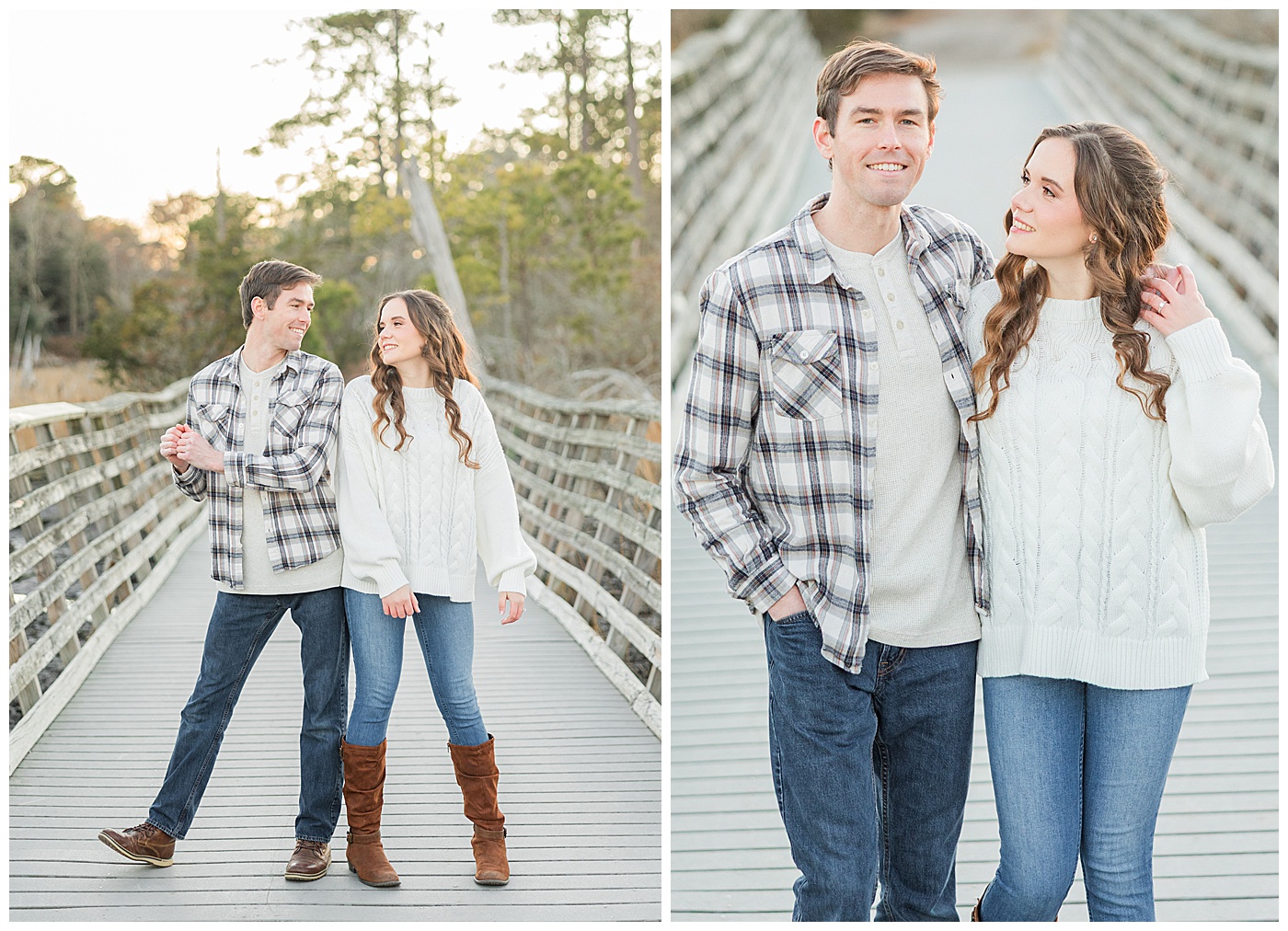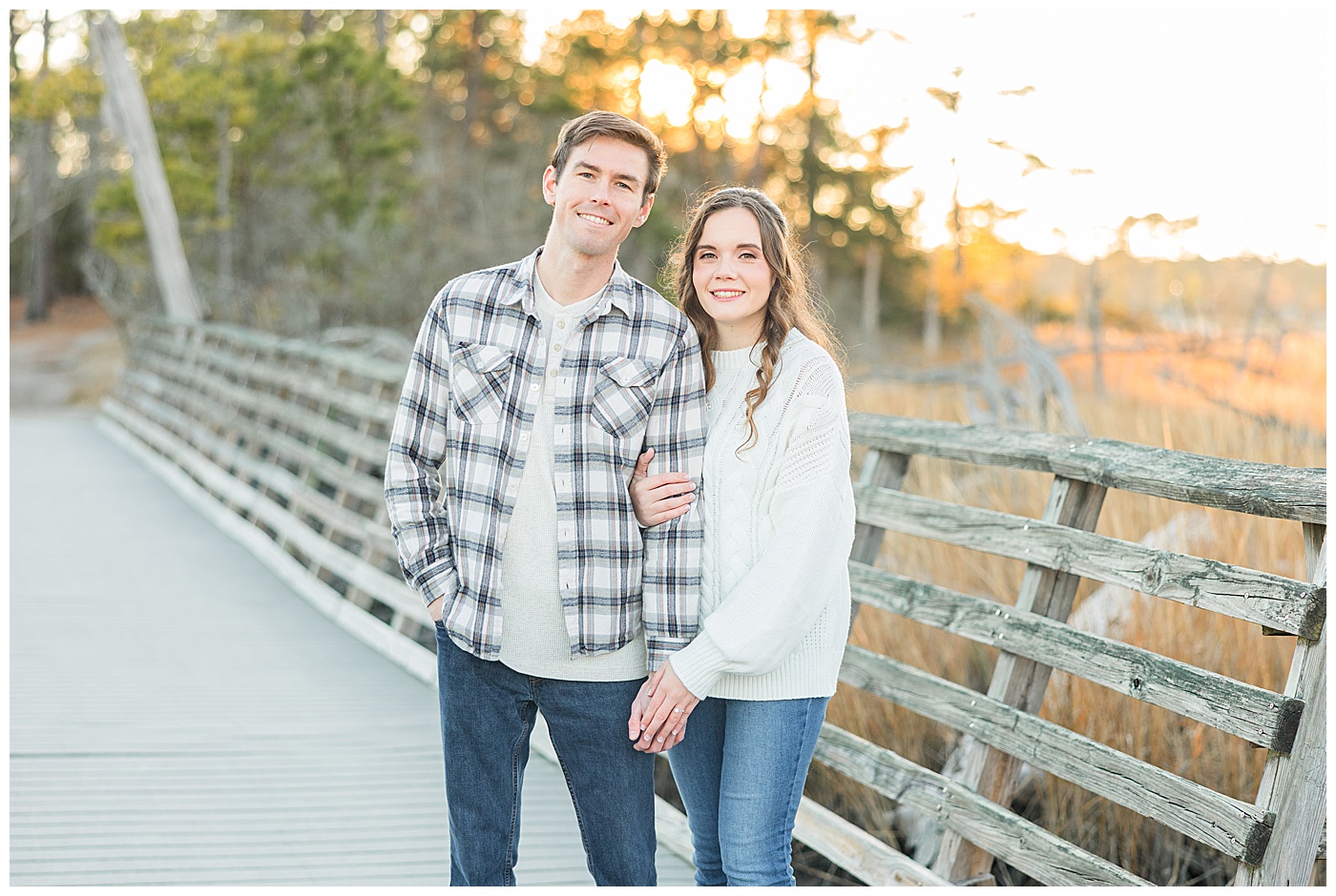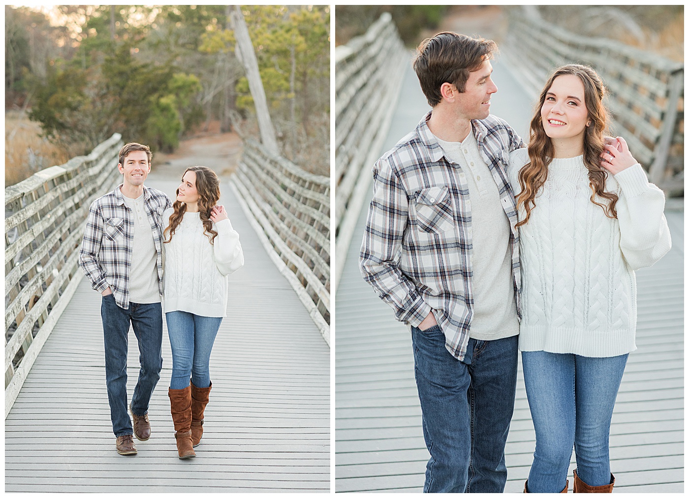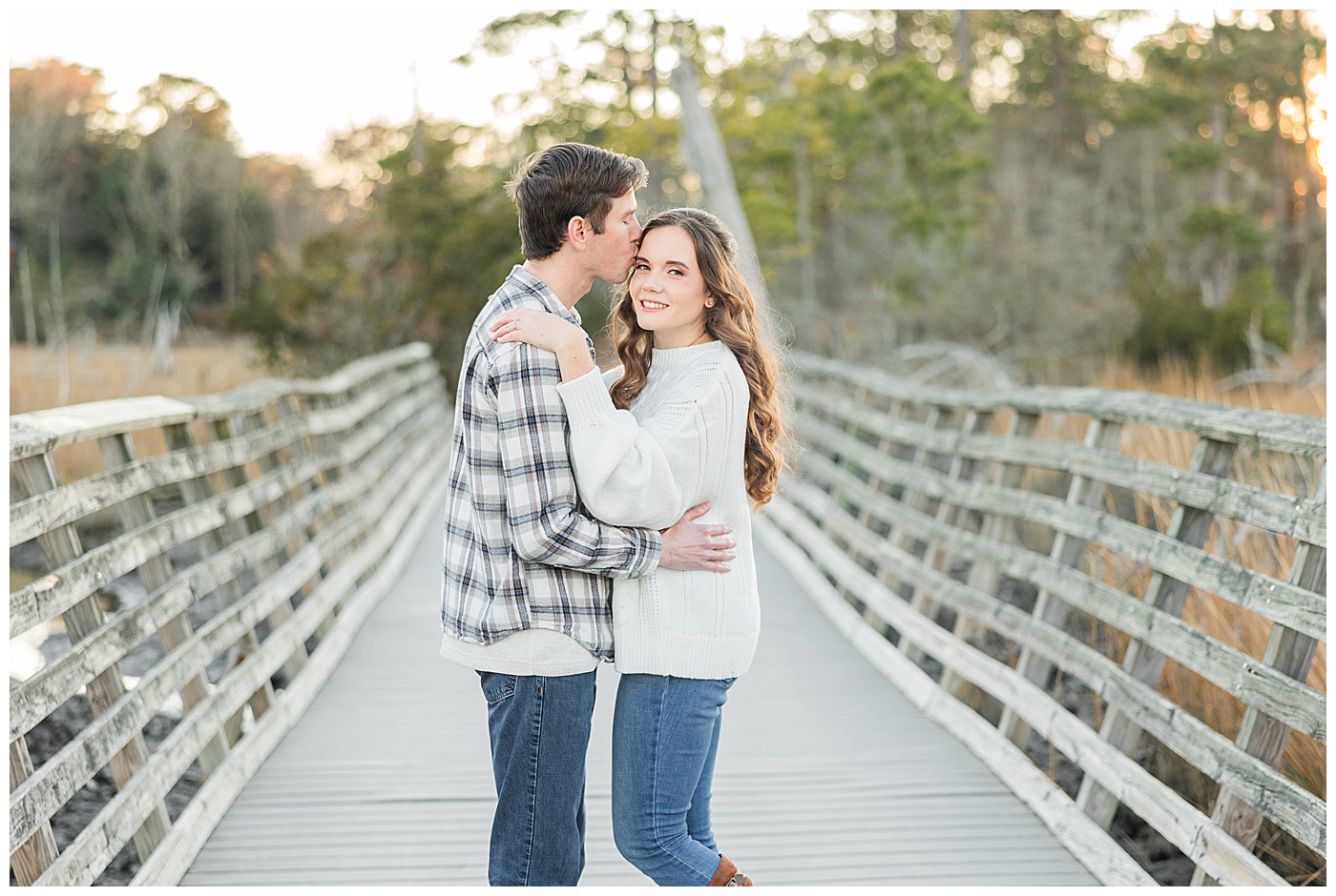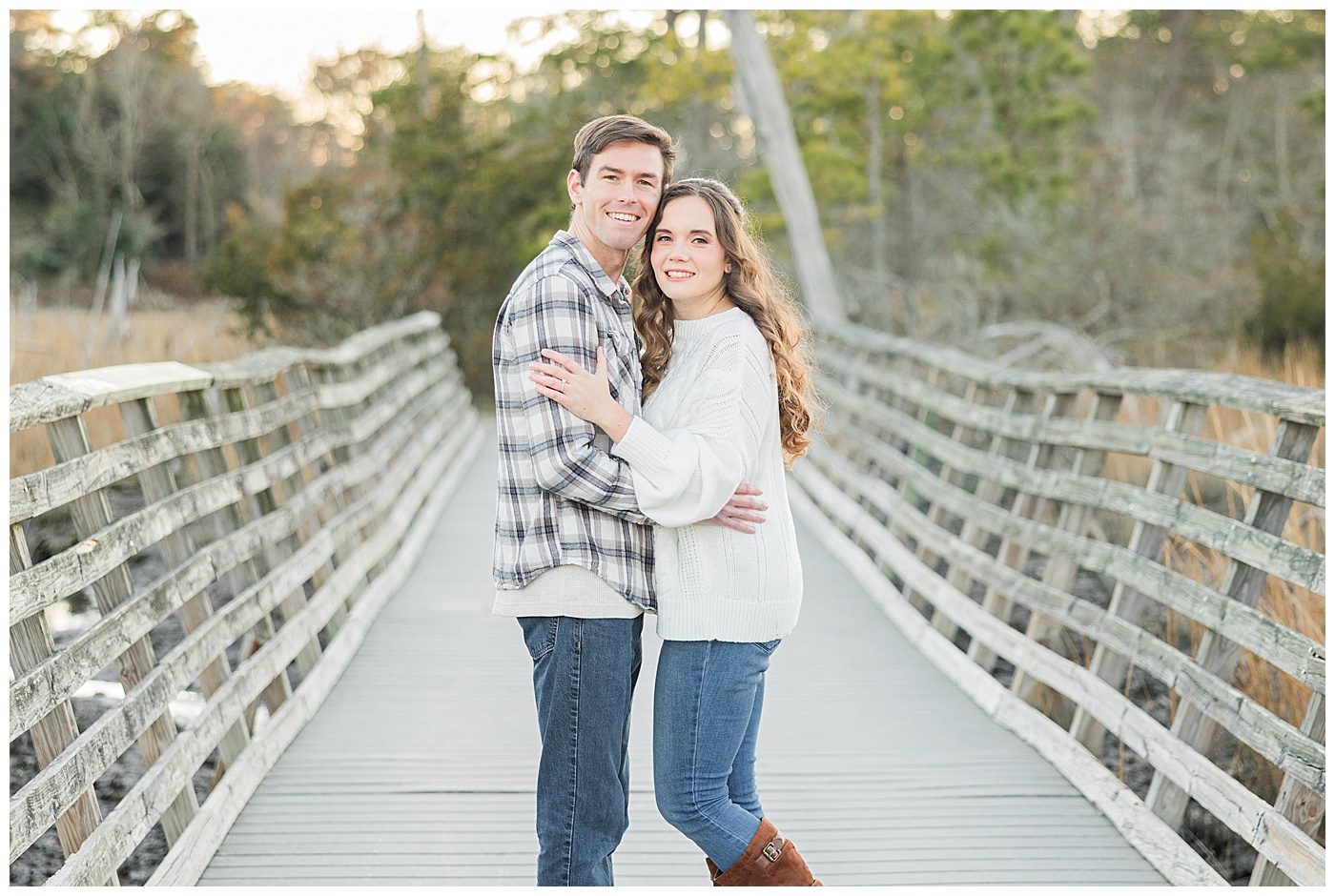 Spring and fall are popular, but winter engagement sessions in Virginia Beach offer soft light, fewer crowds, and a relaxed atmosphere. January at First Landing State Park provides beautiful coastal textures and peaceful surroundings.