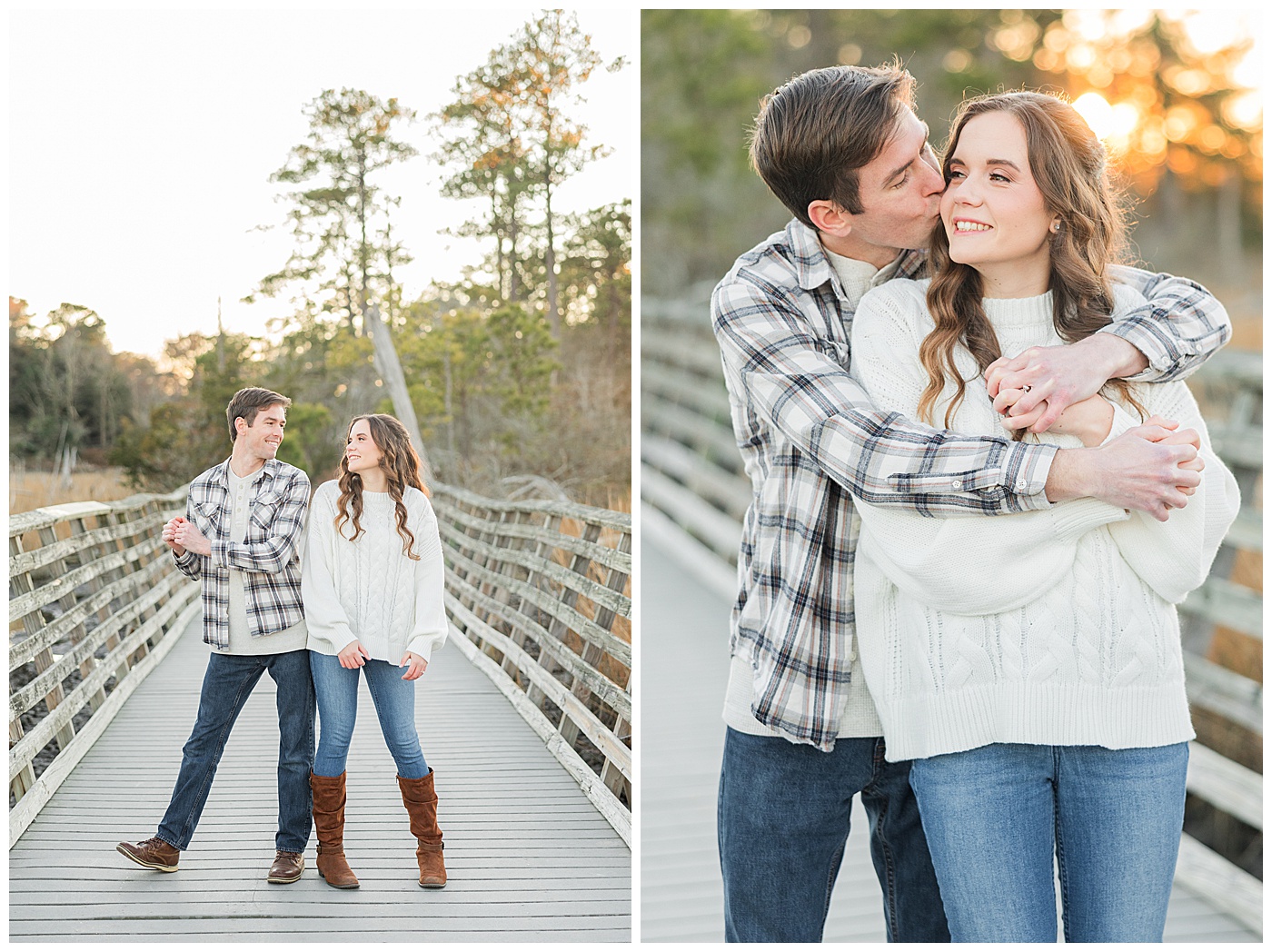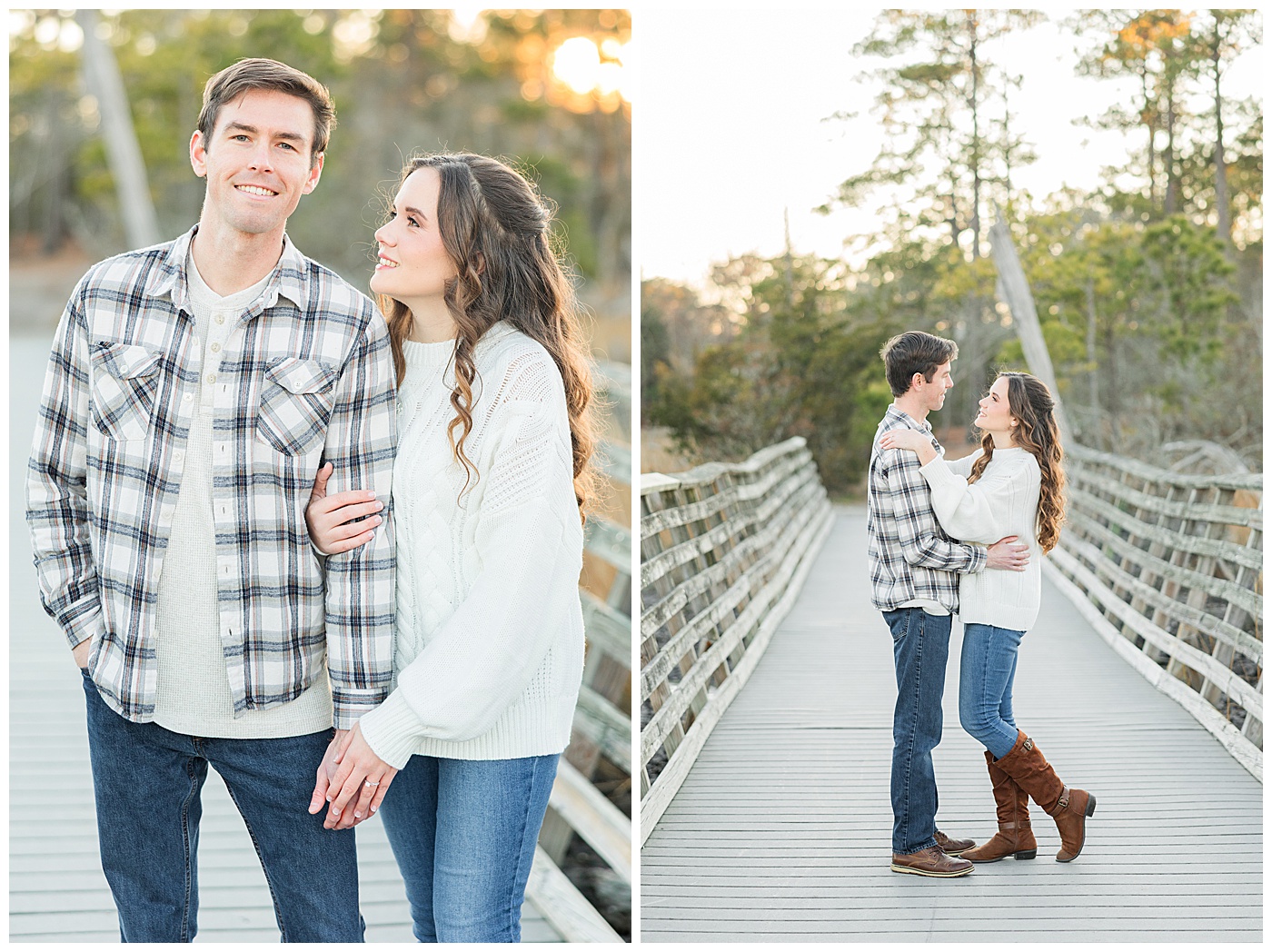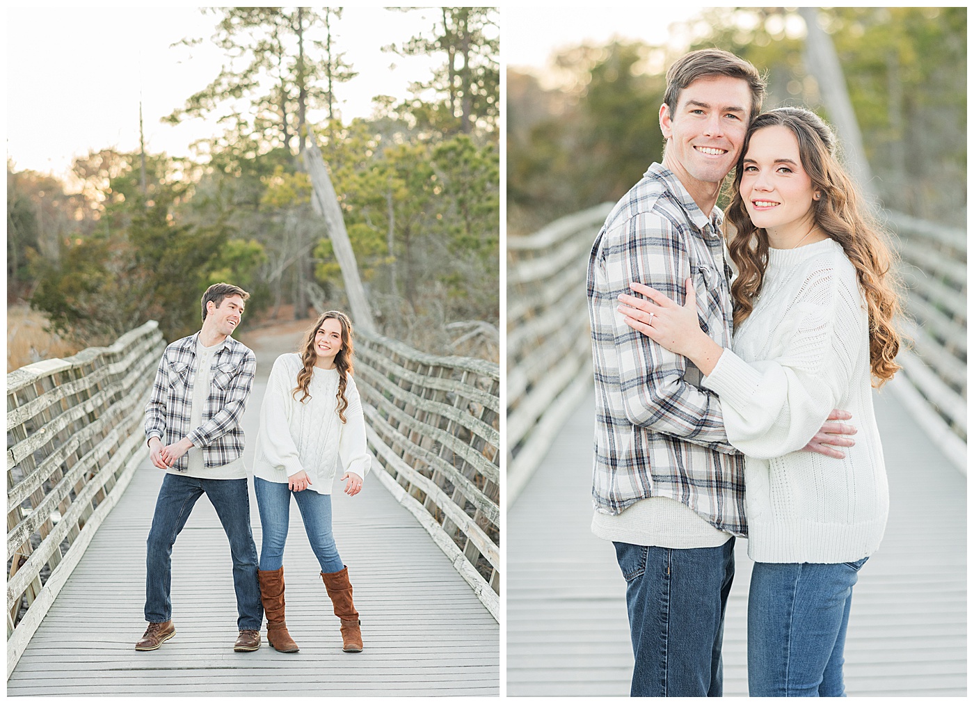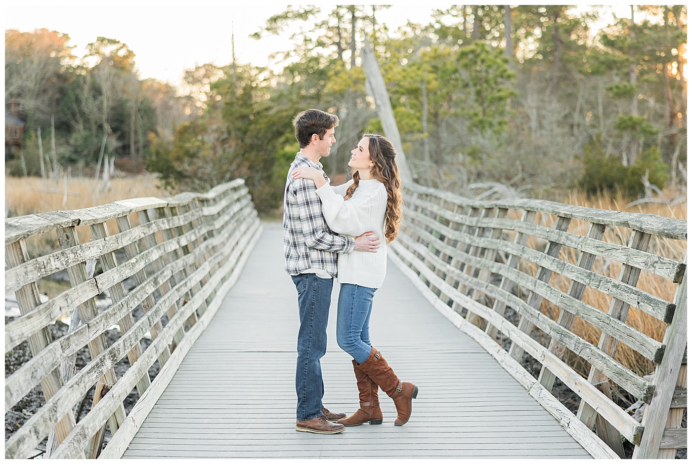 Spring and fall are popular, but winter engagement sessions in Virginia Beach offer soft light, fewer crowds, and a relaxed atmosphere. January at First Landing State Park provides beautiful coastal textures and peaceful surroundings.