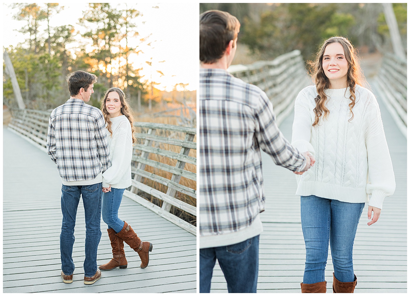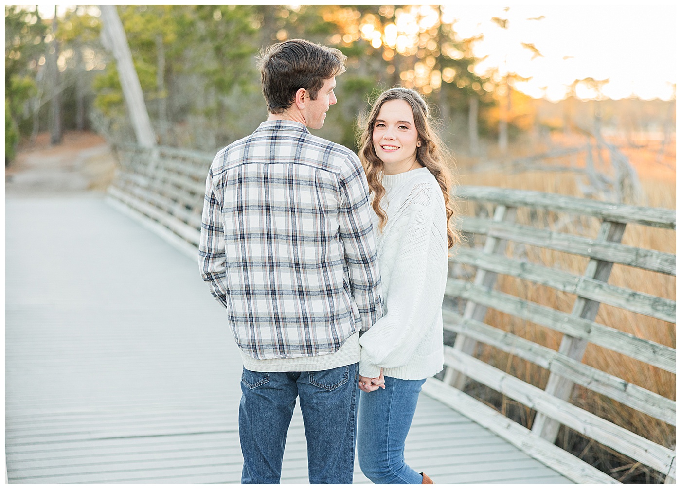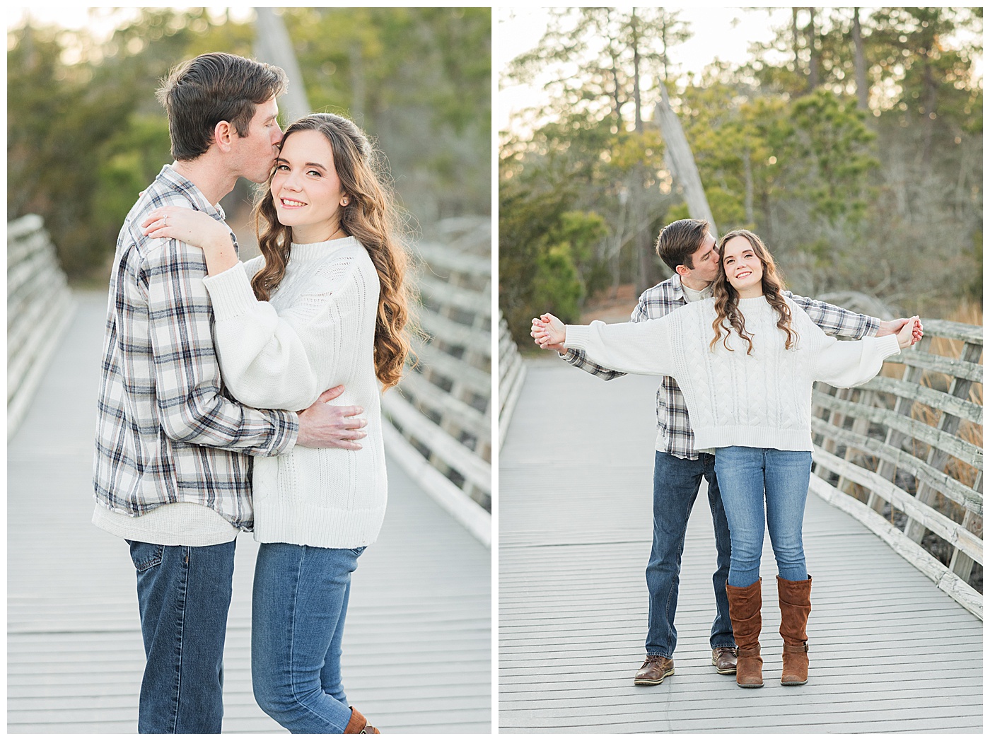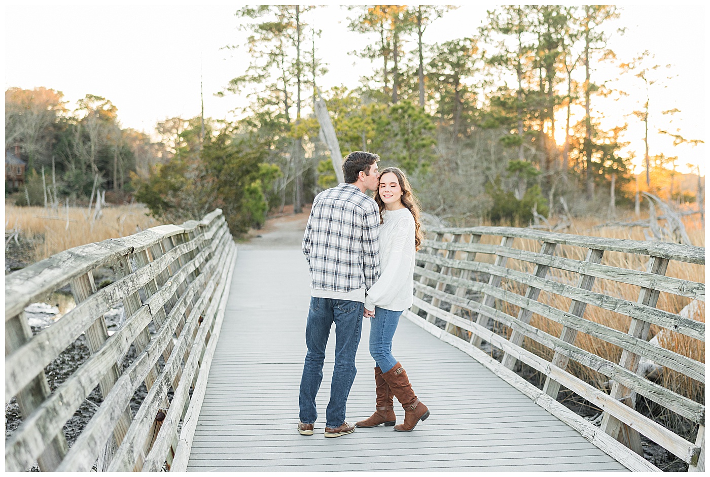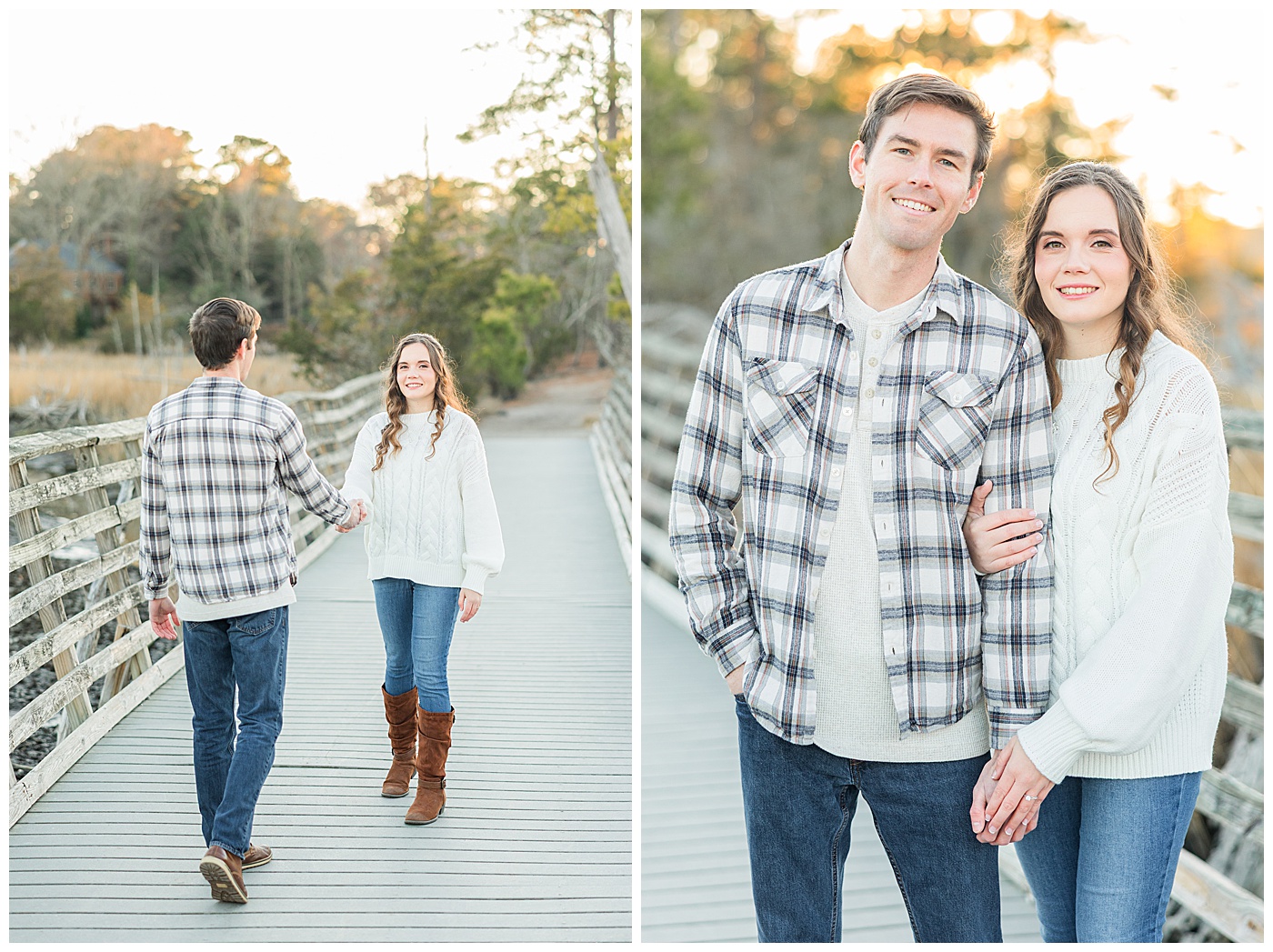 Spring and fall are popular, but winter engagement sessions in Virginia Beach offer soft light, fewer crowds, and a relaxed atmosphere. January at First Landing State Park provides beautiful coastal textures and peaceful surroundings.