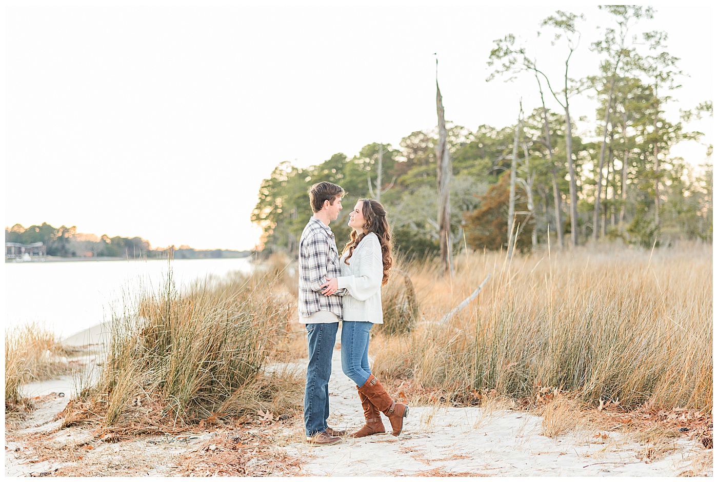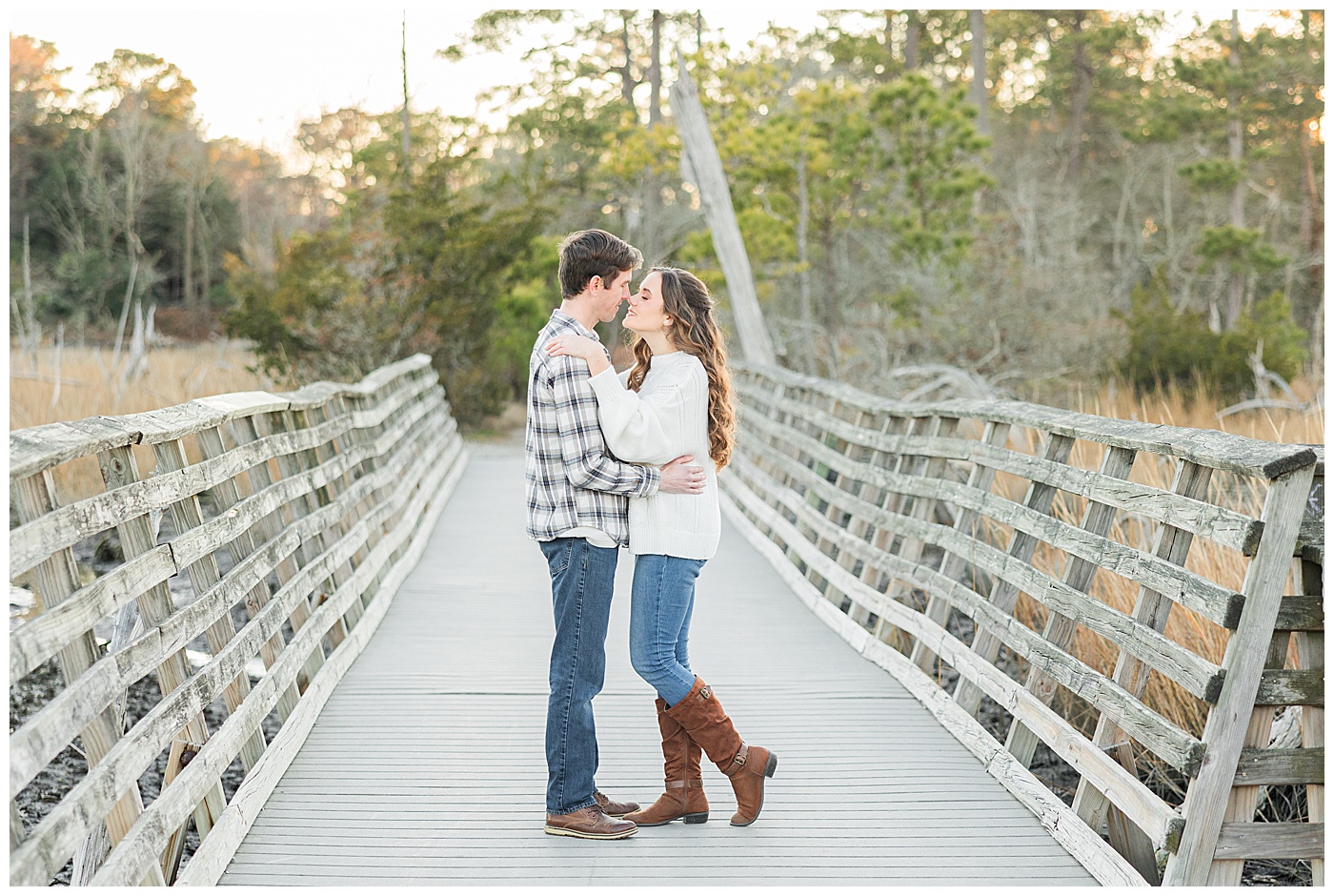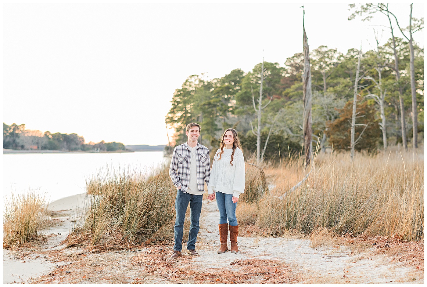 Spring and fall are popular, but winter engagement sessions in Virginia Beach offer soft light, fewer crowds, and a relaxed atmosphere. January at First Landing State Park provides beautiful coastal textures and peaceful surroundings.