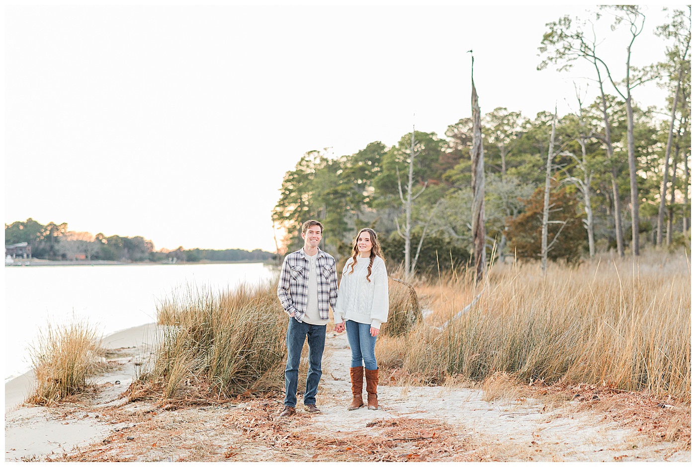 January along the coast has a quiet beauty that feels almost sacred. As a Virginia Beach engagement photographer and Virginia Wedding Photographer, I’ve grown to love the peacefulness winter brings — softer light, open trails, and space for couples to simply be present with one another.
